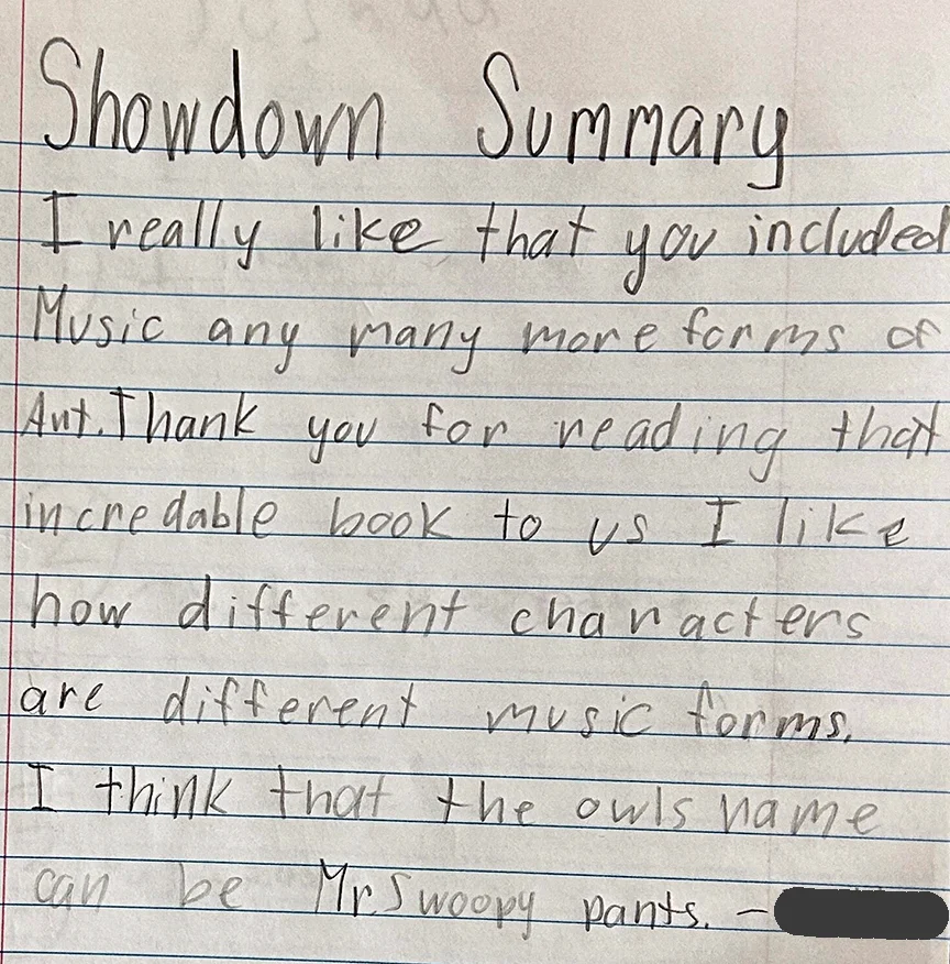 "My students loved 'Showdown Symphony' and ask me to read it all the time. They even use words they learned from the story in their writing journals."