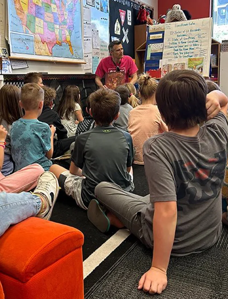 Reach out with some possible dates and an idea of presentations you’d like us to do (how many assemblies, class visits, and which grade levels and topics). We’ll work with you to design a delightful, enlightening experience for your students.